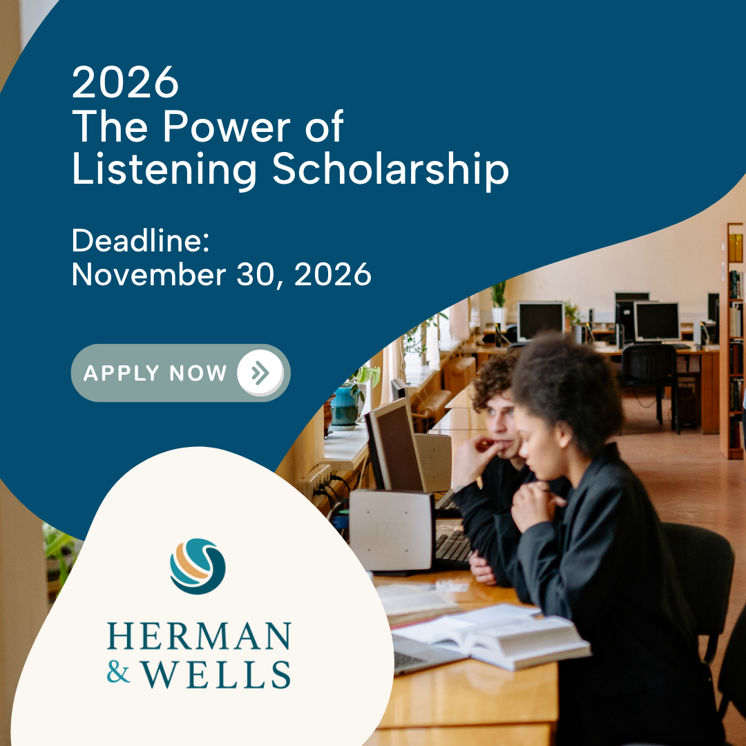 The Power of Listening Scholarship invites students to reflect on the importance of active listening in complex and high-stress environments. Applicants are encouraged to share their perspective on how being truly heard can lead to better decisions and outcomes in fields such as healthcare, education, government, or law. Herman & Wells is proud to offer this opportunity to support students who value thoughtful communication and understanding. Eligible students are encouraged to apply and share their ideas for making a meaningful impact.